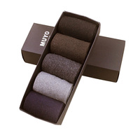 Wholesale 5-Pairs Boxed Business Casual Men's Socks Solid Pattern Autumn Season Cuff Logo Position